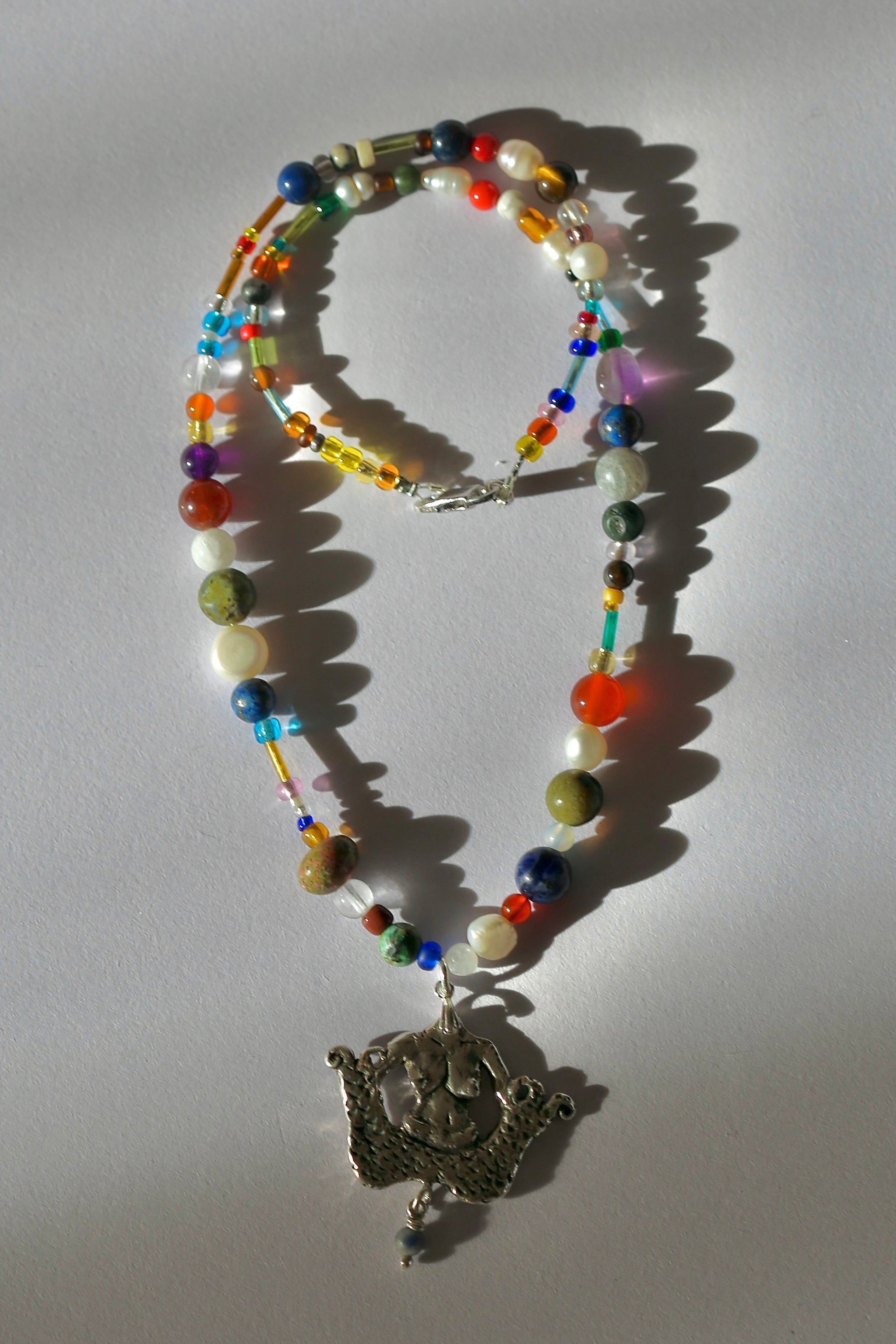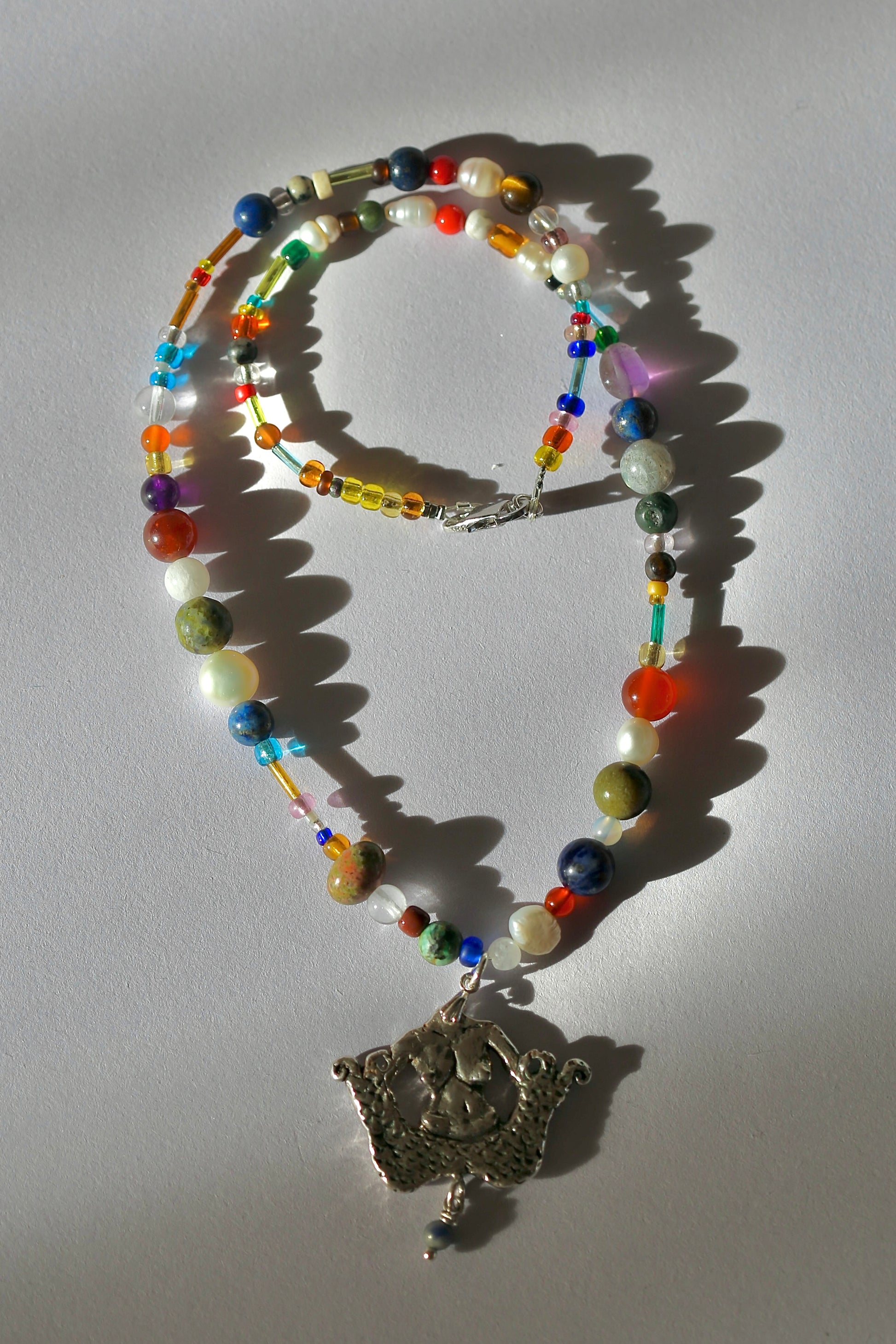 Custom Melusine pendant with mixed semi precious stone beads and sterling silver findings.